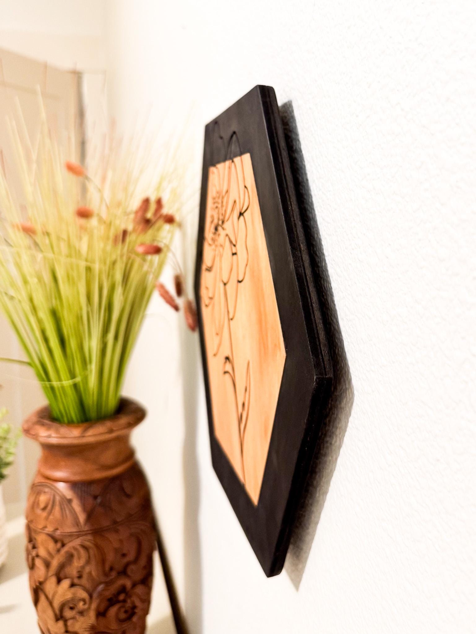 Bring a touch of nature and modern design into your space with this handcrafted hexagon wood wall art. Featuring a delicate botanical line engraving, this piece blends minimalist style with the warmth of natural wood—perfect for creating a calm, curated look in any room.