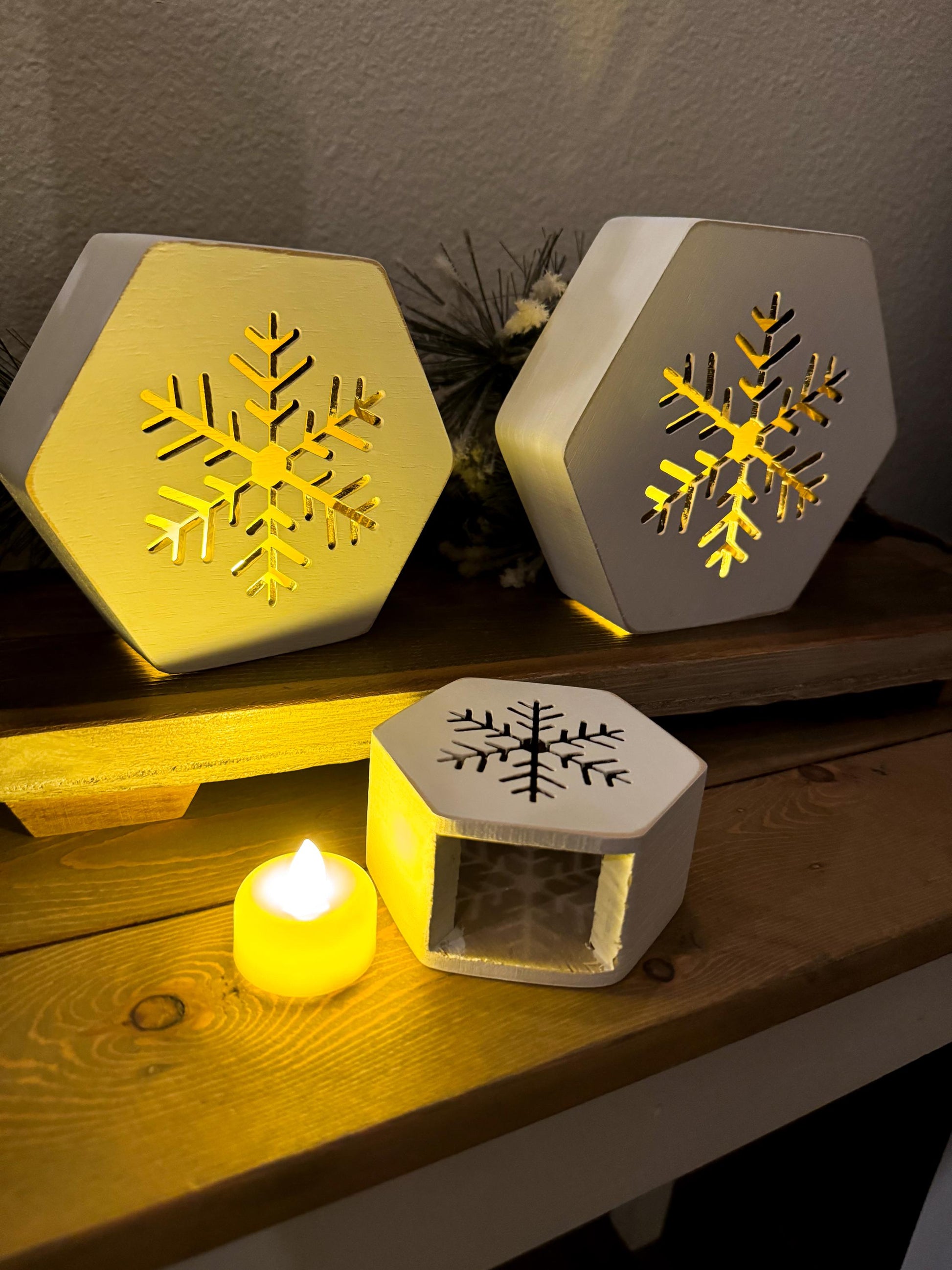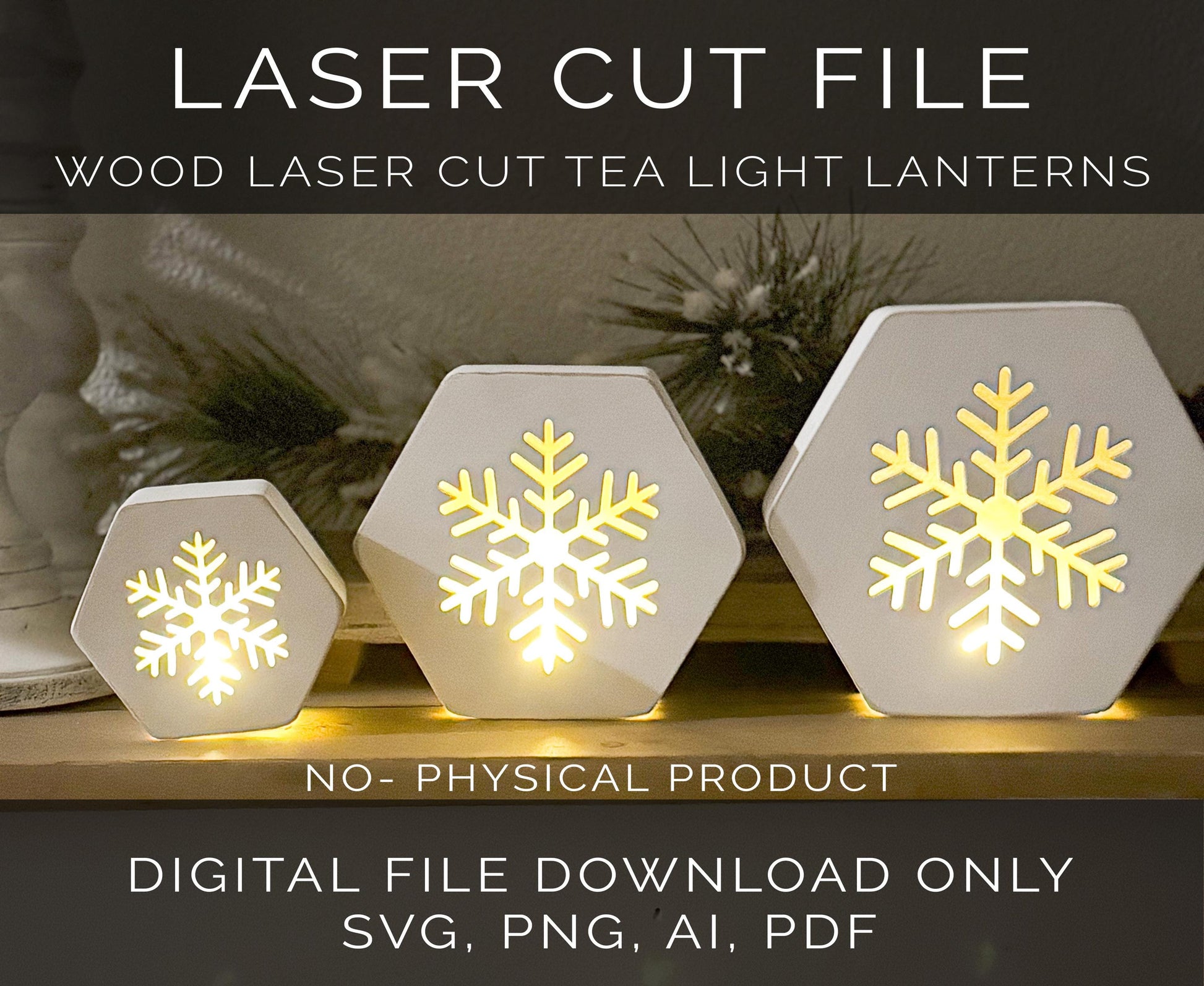 Create your own glowing snowflake lanterns with this laser cut file set! Perfect for winter and Christmas decorating, these lanterns are designed for use with battery-operated tea lights (NOT included).