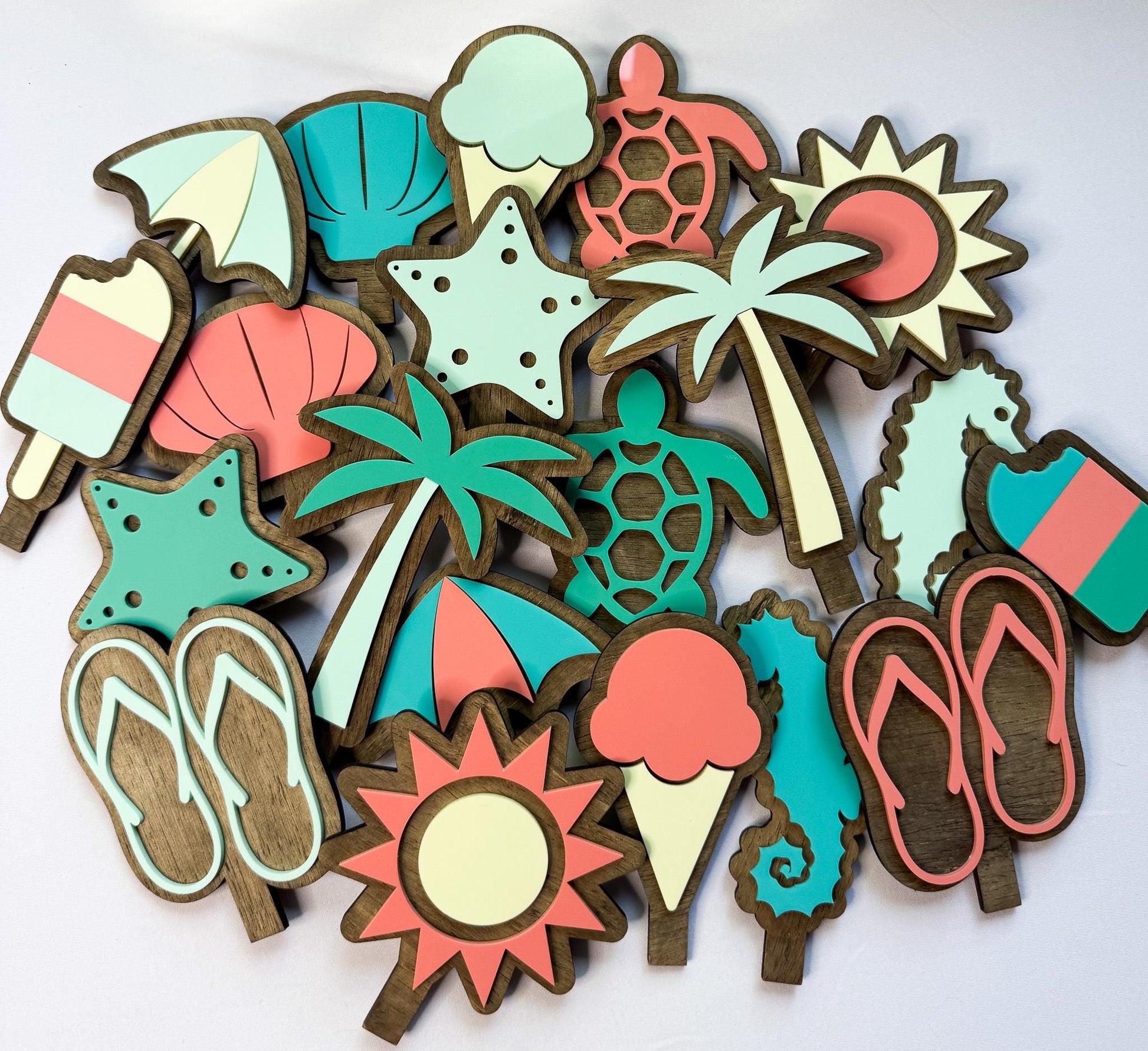 Tropical Acrylic Inserts, Summer Wreath Decor, Sea Turtle, Palm Tree, Starfish